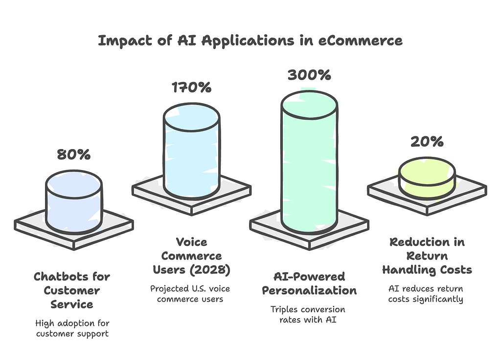 Discover how AI is revolutionizing eCommerce with innovative applications like personalized recommendations, chatbots, dynamic pricing, and visual search. Learn how AI-driven automation enhances customer experience, boosts conversions, and streamlines operations for online retailers. Stay ahead in the competitive digital marketplace with these game-changing AI solutions.