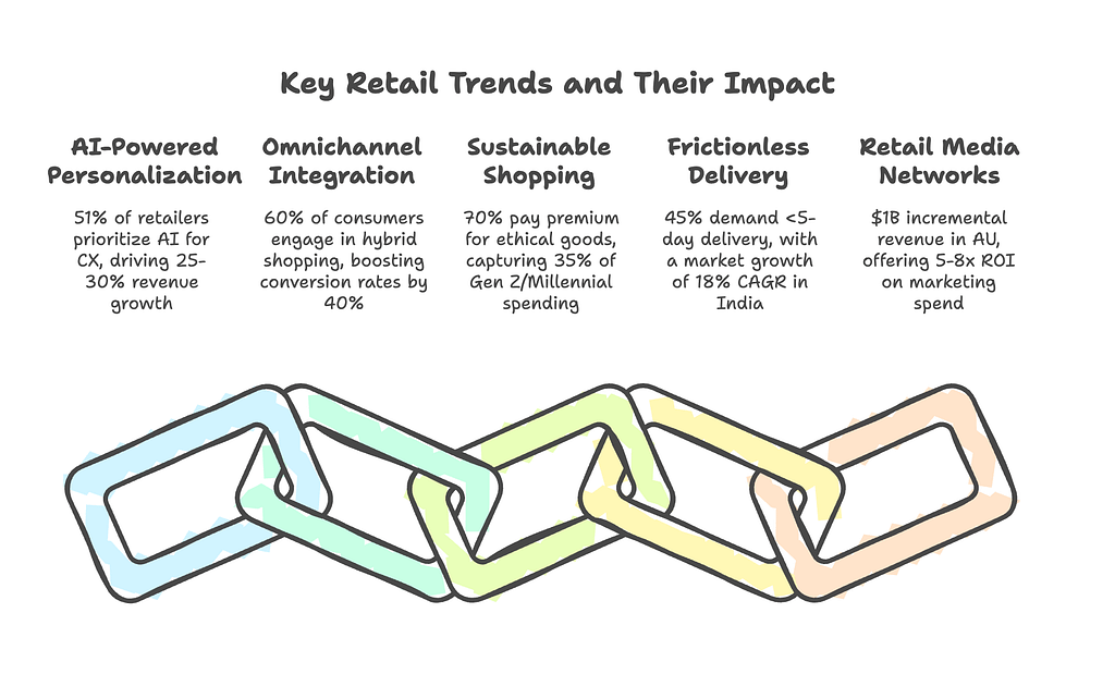 Discover the top consumer trends revolutionizing retail in 2025, from AI-powered personalization and seamless omnichannel shopping to the rise of sustainable brands. With AI-driven recommendations boosting revenue and emerging technologies like AR/VR and voice commerce transforming customer experiences, businesses must adapt to stay competitive. Explore how these trends are shaping the future of direct-to-consumer (D2C) retail and driving growth.