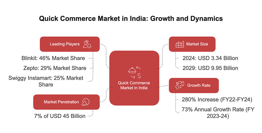 India’s retail landscape is undergoing a major transformation. Quick commerce India is emerging as a powerful force, offering a $9.95 billion opportunity by 2029. While traditional e-commerce grows at 14% annually, quick commerce is booming at a 73% CAGR.