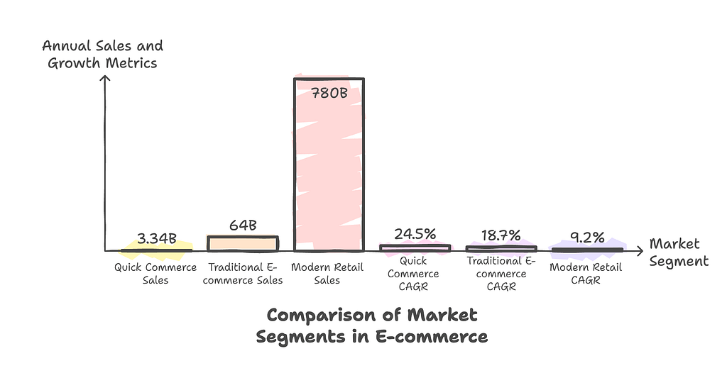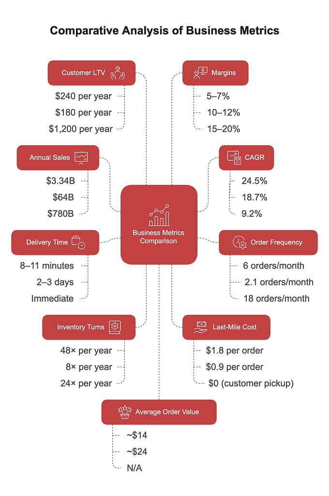 Metric | Quick Commerce | Traditional E-commerce | Modern Retail |